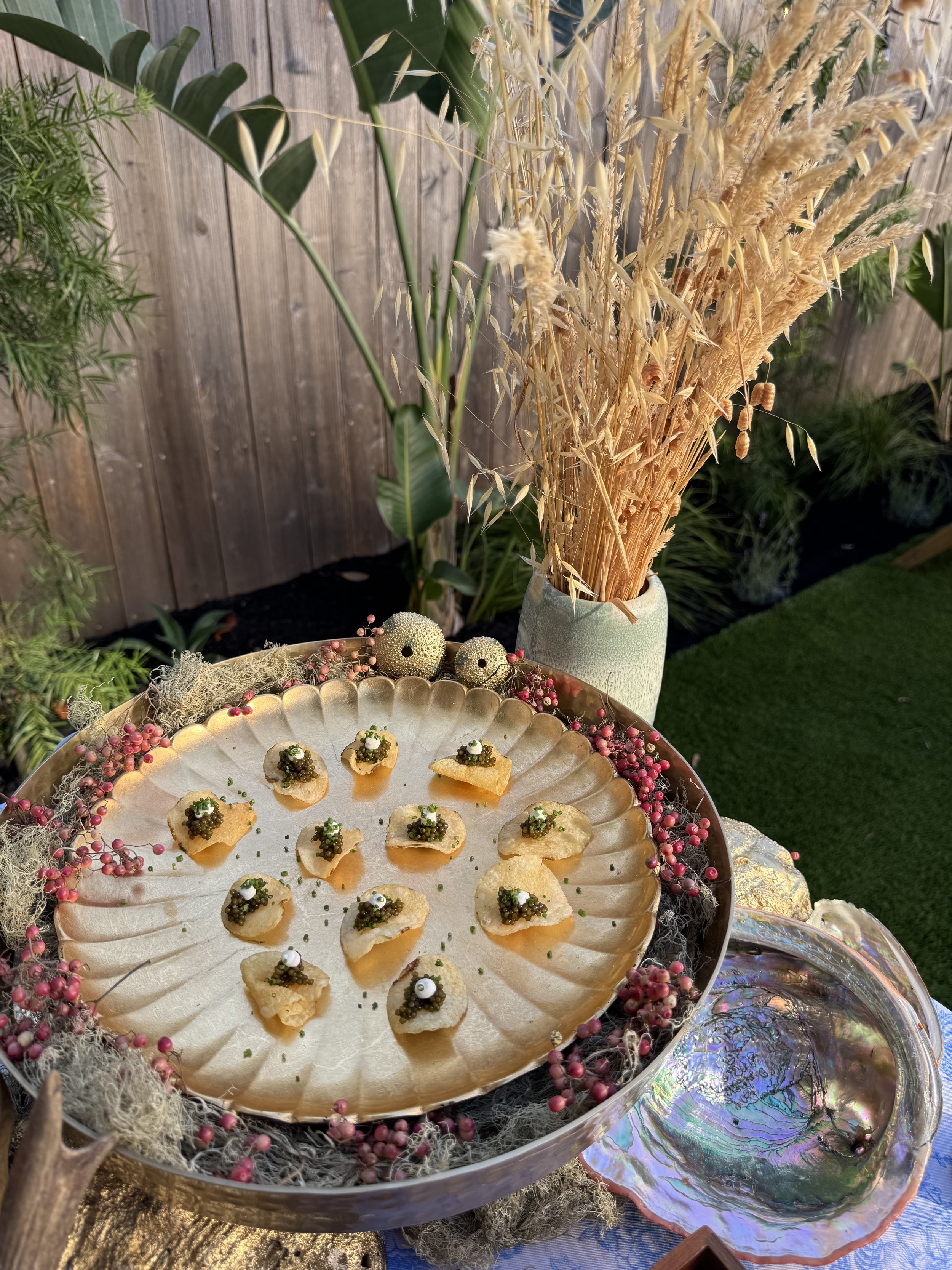 - Oyster bars: Savor the finest Tomales Bay oysters, expertly shucked and presented on a bed of ice in our custom designed oyster trays, accentuated with my signature decor of hand foraged elements of nature. Elevate any occasion, perfect for corporate events, weddings, and social gatherings in Marin County and the Bay Area
